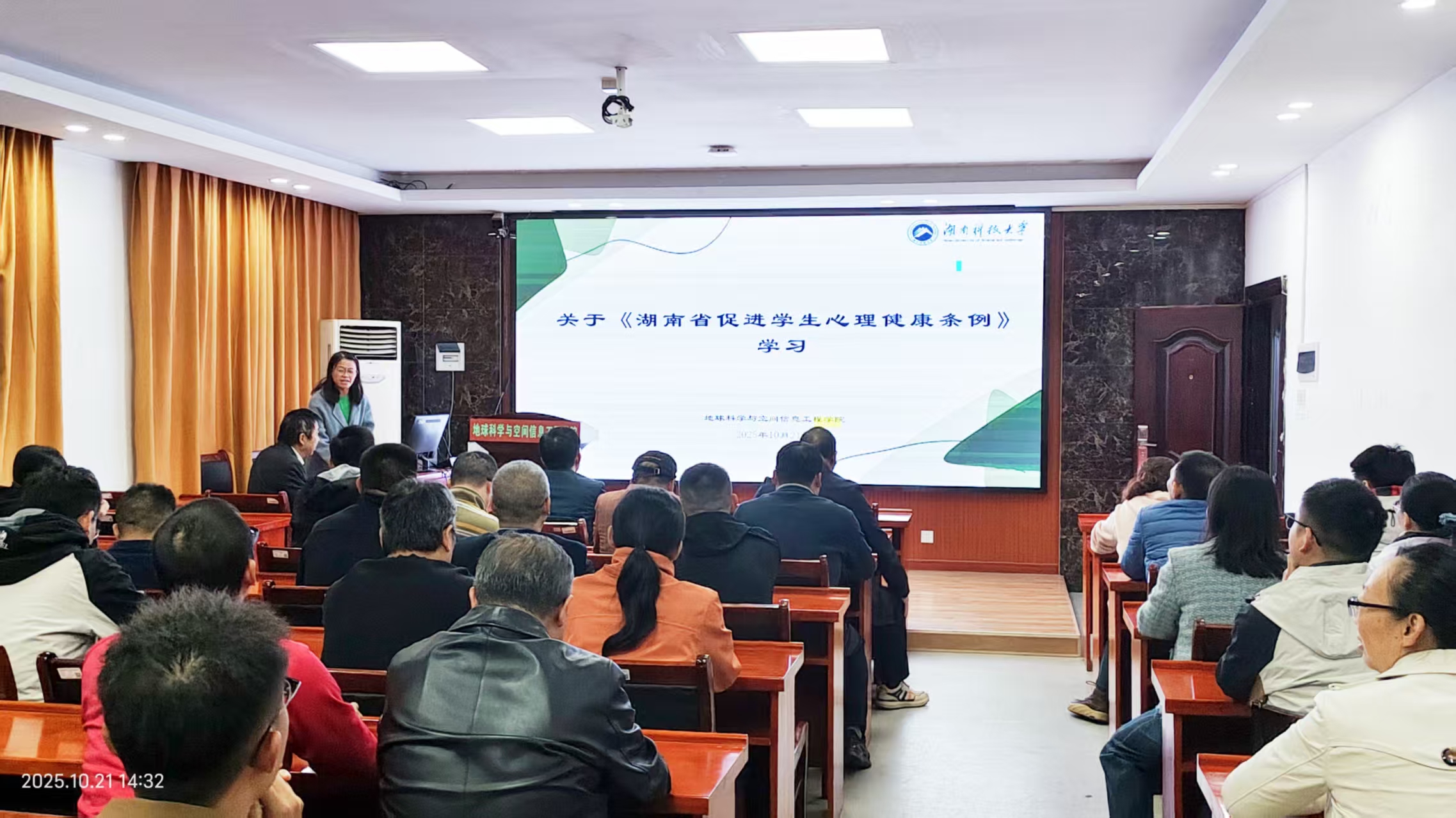 为深入贯彻落实《湖南省促进学生心理健康条例》(以下简称《条例》)精神,全面提升教师心理健康教育能力,为学生筑牢心理防线,2025年10月21日下午,地球科学与空间信息工程学院(以下简称:地空学院)组织全体教职工深入学习《条例》内容,明确职责使命,凝聚育人合力。