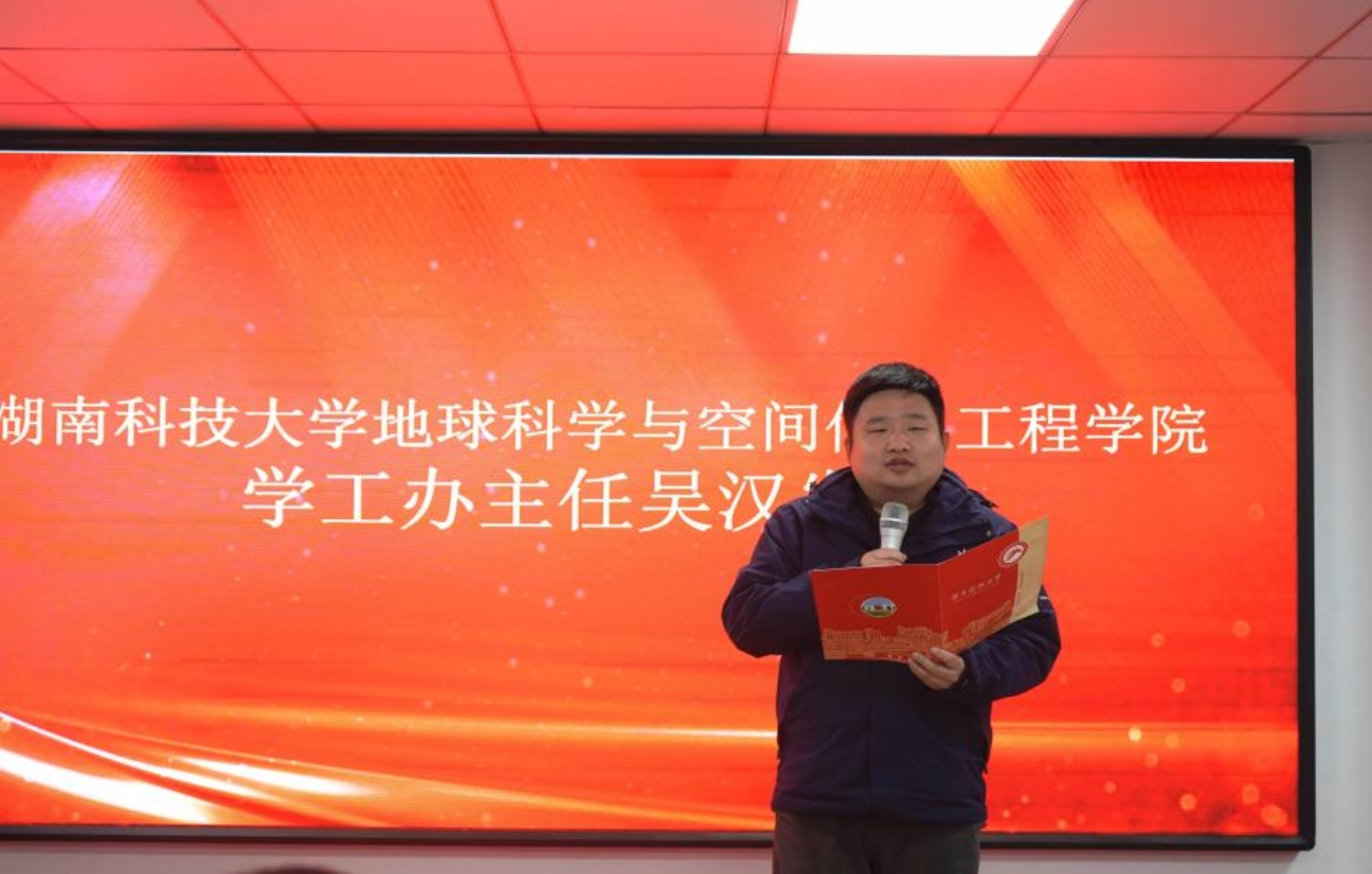 ▲学院学工办主任吴汉发表讲话