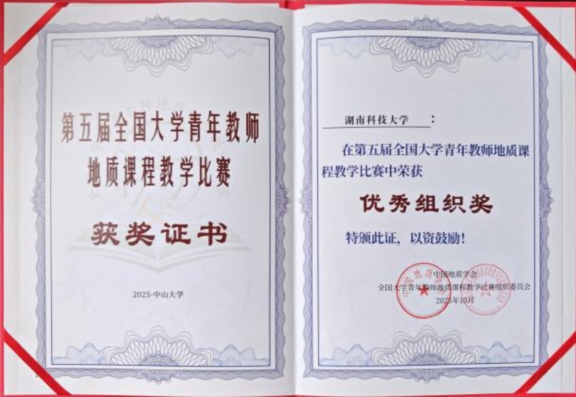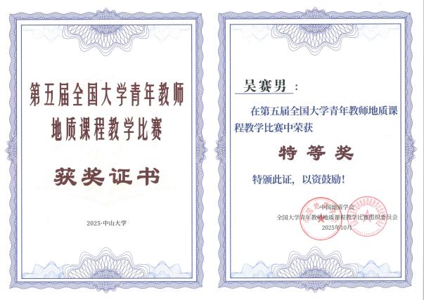 2025年10月25日至10月26日,由中国地质学会主办,中国地质学会地质教育研究分会和中山大学承办的第五届全国大学青年教师地质课程教学比赛在珠海举行,经过两天的激烈角逐,地球科学与空间信息工程学院(以下简称地空学院)地质系吴赛男老师获得特等奖的好成绩。